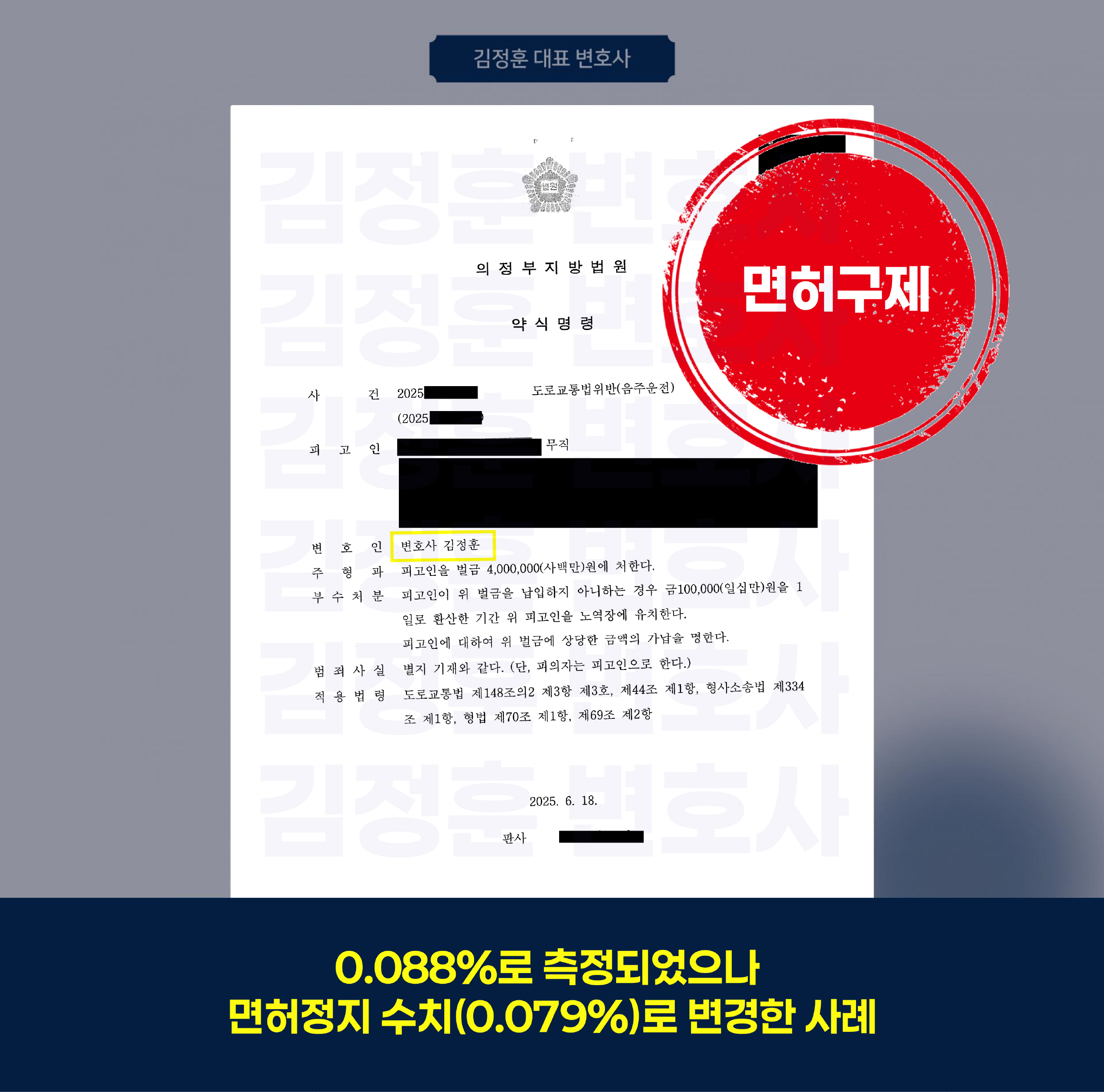 혈중알코올농도 0.088% → 0.079% 재산정 성공 | 면허 취소 위기를 면허 정지로, 벌금도 대폭 감경
