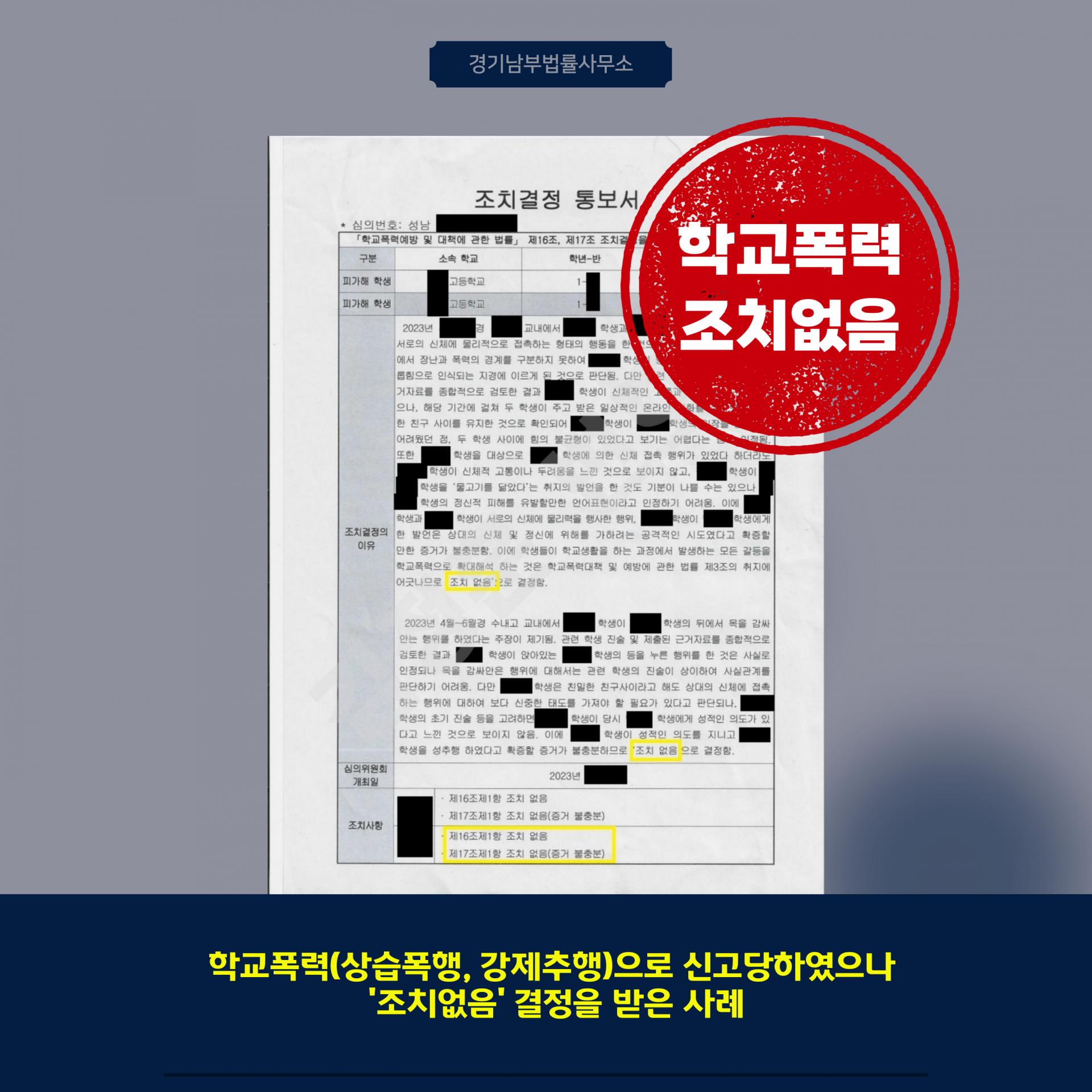 [소년,학폭] 고교 내 상습폭행 및 강제추행 신고, ‘조치 없음’으로 전원 방어 성공