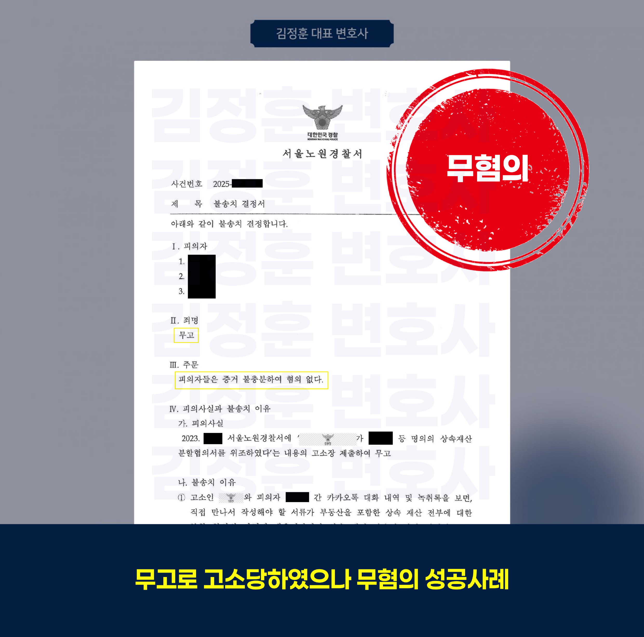 무고로 고소당했으나 3인 전원 혐의없음, 상속재산분할협의서 위조 혐의 불송치 결정