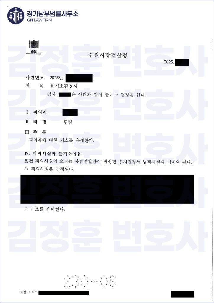 보이스피싱 연루 사건은 초동 대처가 늦을수록 실형을 피하기 어렵습니다. 김정훈 변호사는 범의 부재, 기망에 의한 피해자성, 횡령죄 구성의 법률적 모순이라는 세 가지 축으로 치밀하게 변론을 구성했습니다. 그 결과 가장 중대한 혐의에서 무혐의를, 횡령 혐의에서는 기소유예를 이끌어내어 의뢰인이 전과자가 될 위기에서 완전히 벗어나게 했습니다. 억울한 상황일수록 혼자 감당하지 마시고, 처음부터 전문가와 함께 올바른 대응 전략을 세우시기 바랍니다.